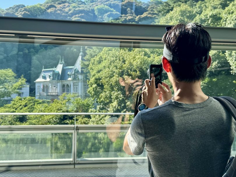 Through the glass, visitors can admire the beautiful architecture of Bansuiso.
