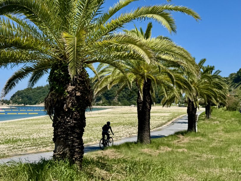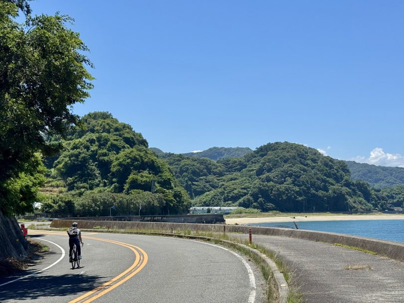 Cycling along Prefectural Roads 347 to 39 takes you along the coastal road overlooking Gogoshima Island.