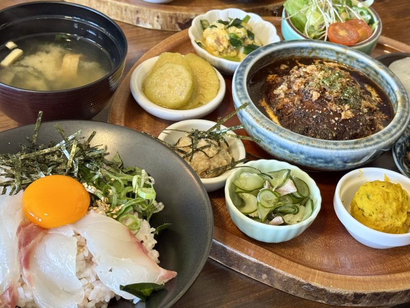 Nestled in a naturally rich location surrounded by mountains and sea, it offers a diverse range of local produce including freshly picked vegetables, seafood, handmade side dishes, and pickles. The popular “taps serving mikan juice” are also available.